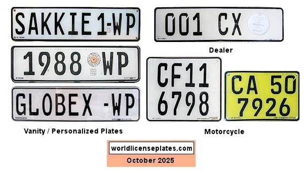 (A) 1976 series still in use. Originally embossed on black on yellow, now increasingly (but not exclusively) in flat black on white.